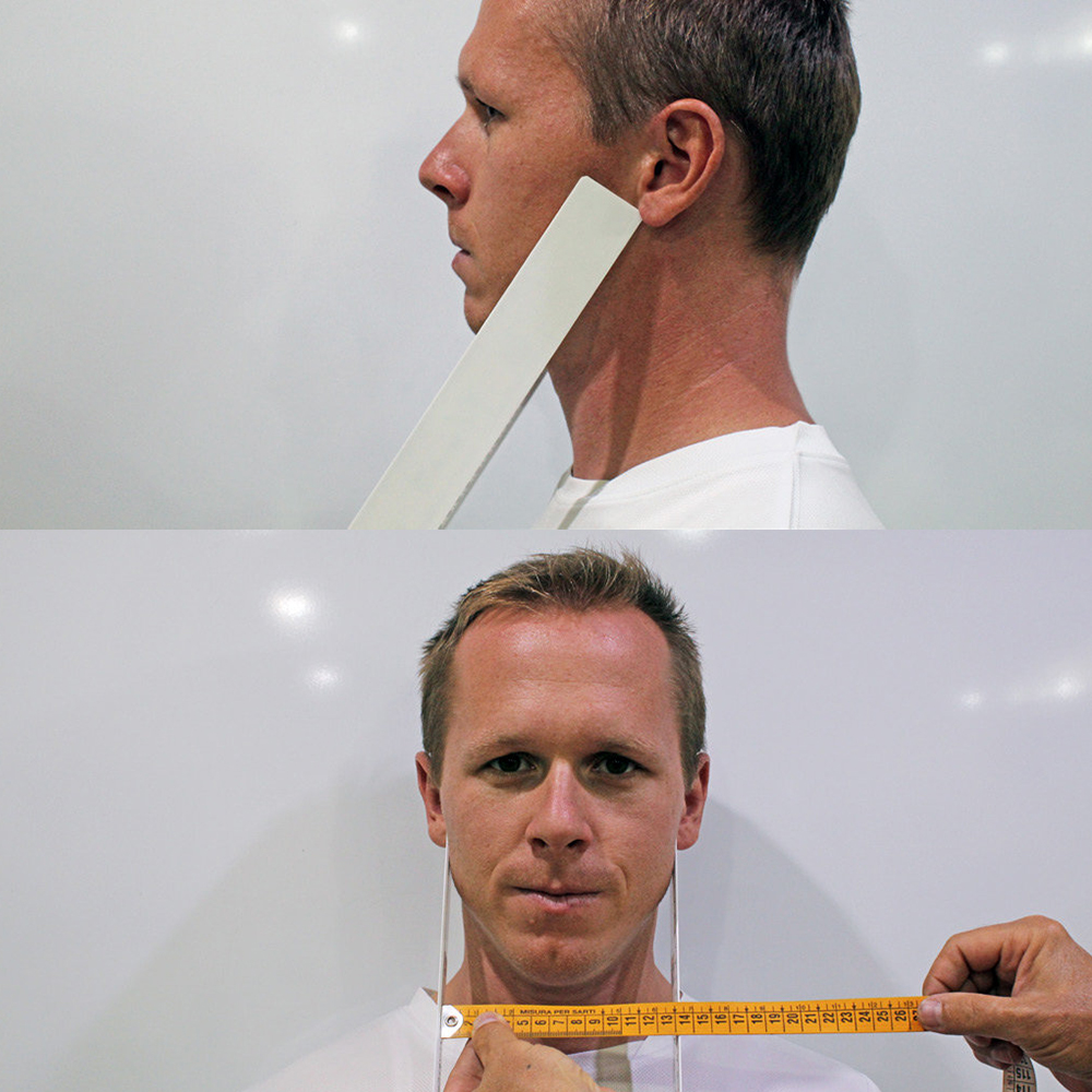 - Face Width:Â Measure the face width by positioning 2 rulers (or similar objects), at the base of the ears and make sure they are held vertically and parallel between them. Extend the tape horizontally and measure the distance between the 2 points.